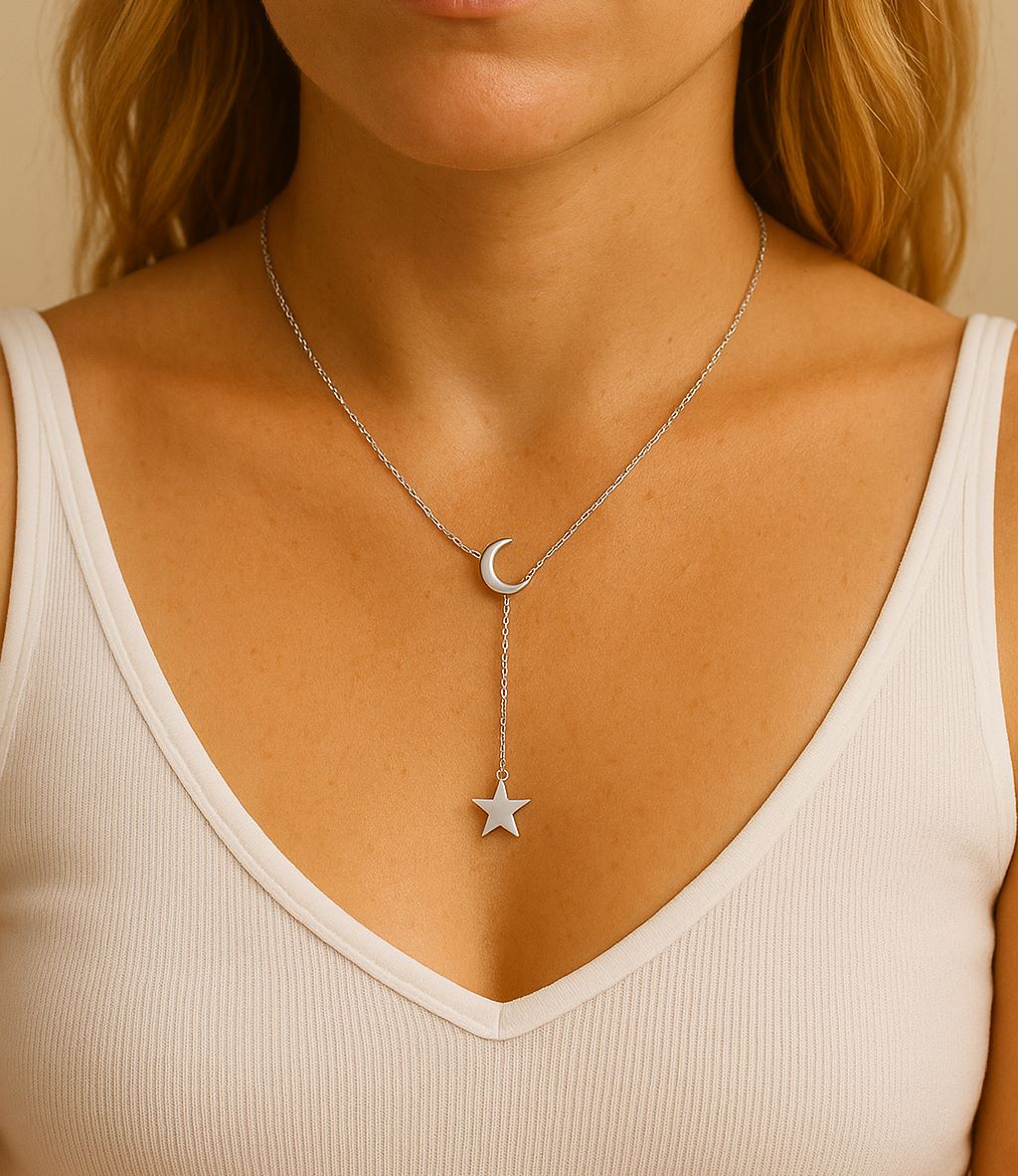 Ce collier original avec pendentif lune et étoile en forme de Y est un bijou de qualité à porter au quotidien. Ce collier  cravate avec  ajoute une touche élégant et romantique à votre décolleté. Résistant à l’eau , convient pour un usage quotidien ou comme cadeau.