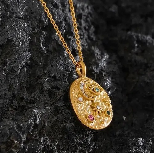 Ce collier médaille lune est parfait pour les femmes qui aiment les colliers originaux.