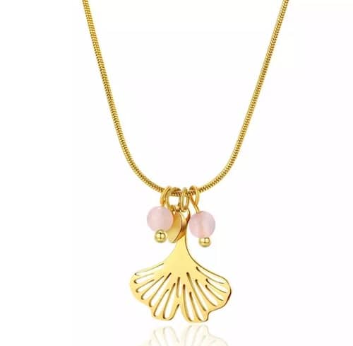 Ce collier pendentif gingko, orné de perles de jade rose, associe élégance et durabilité grâce à sa fabrication en acier inoxydable de haute qualité. Le pendentif en forme de feuille de gingko symbolise prospérité, longévité et bonheur, un choix idéal pour celles et ceux qui souhaitent intégrer une note significative à leur style.