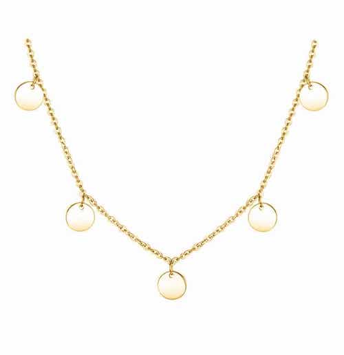 Ce collier orné de  petites médailles est un bijou intemporel qui apporte une touche chic à n’importe quelle tenue. Avec sa chaîne fine et ses petites médailles tout au long de la chaîne, ce collier est à la fois délicat et original.