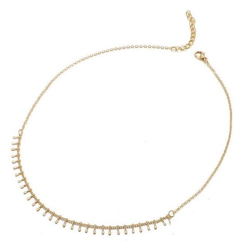 Adoptez un look tendance et raffiné avec notre collier ras du cou orné de pampilles en métal doré et argenté. Ce collier bijou pampille est un choix chic et minimaliste, idéal pour ajouter une touche sophistiquée à toutes vos tenues. Les pampilles confèrent une allure bohème moderne, créant un effet visuel captivant autour du cou.