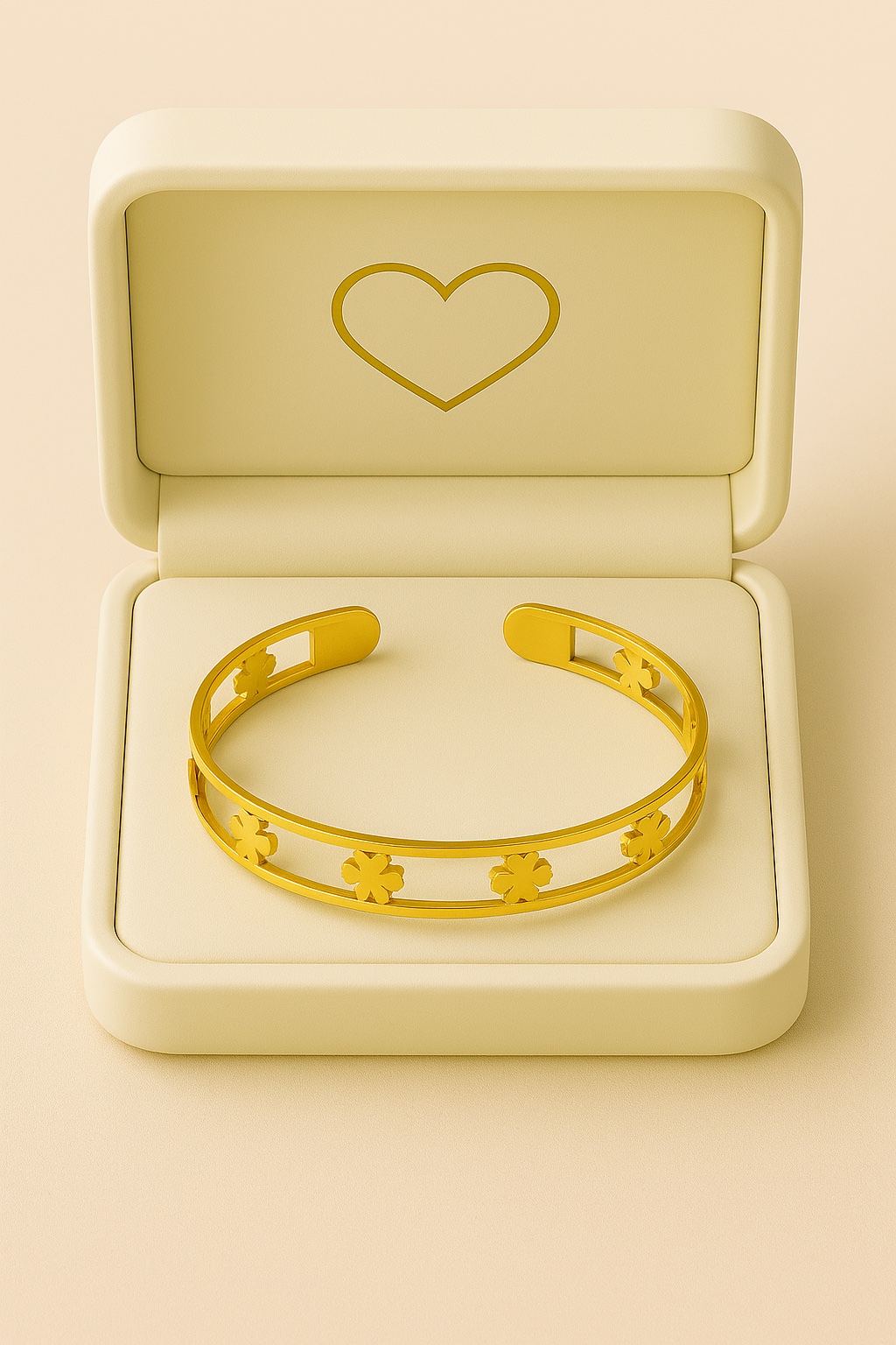 Jonc trèfle en acier inoxydable pour femme. Ce bracelet rigide ouvert et ajustable se distingue par ses motifs trèfle ajourés, rappelant la chance et l’harmonie. Disponible en finition argentée ou dorée, il accompagne aussi bien une tenue quotidienne qu’un moment spécial. Résistant à l’eau, convient pour un usage quotidien ou comme cadeau.